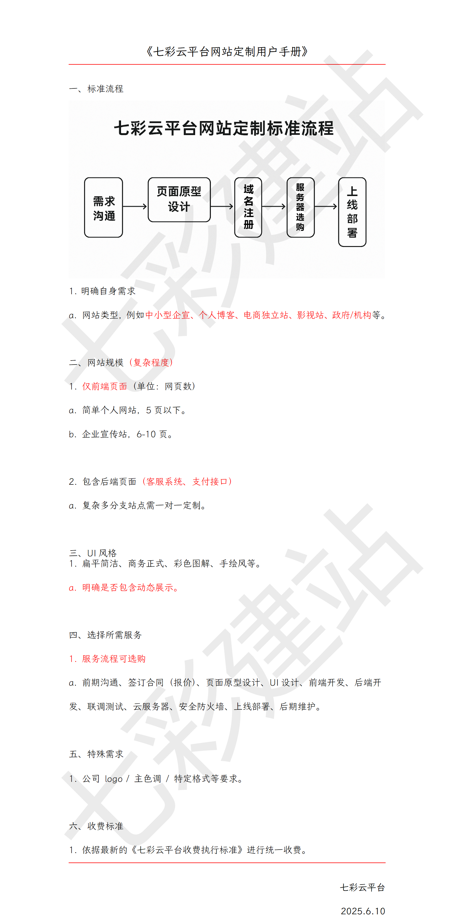 七彩云平台网站定制流程